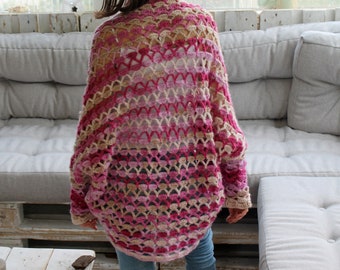 Design von Sabines-Wooly-World bei. Der Seelenwärmer ist ein Rechteck bei welchem die 4 Ecken umgeklappt und so weit zusammengenäht oder gehäkelt werden dass nur die Armausschnitte offen bleiben. Weste Seelenwärmer HARMONY.