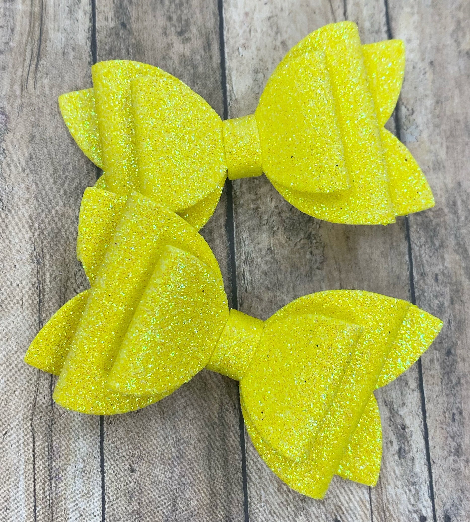Neon Glitter Mini Hair Bow Clip Yellow Claire S